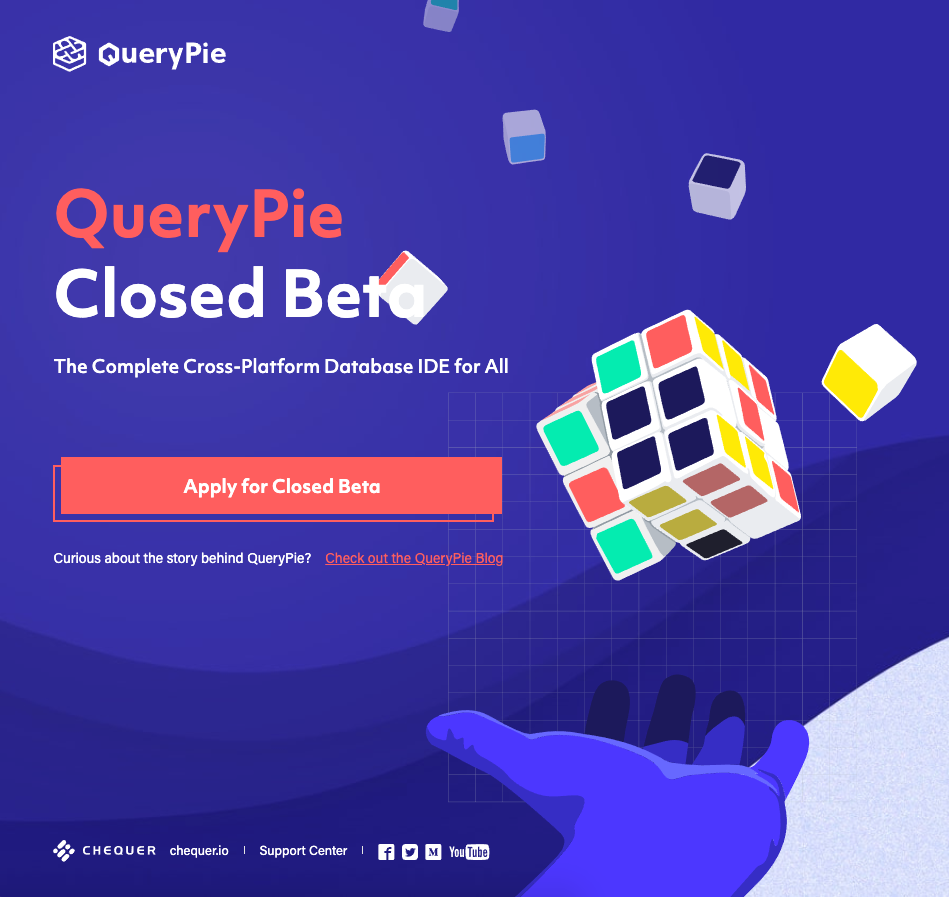 CHEQUER에서 현재 참여하고 있는 프로젝트 QueryPie 사이트가 오픈되고, 클로즈 베타 버전 지원을 받고 있습니다. QueryPie를 한마디로 표현하면 크로스 플랫폼 데이터베이스 툴입니다.