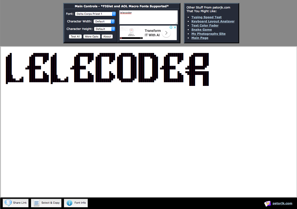 원하는 글자를 직접 입력할 수 있지만, 생각만큼 예쁘게(?) 나오지 않는다. 텍스트를 그럴듯하게 표현해주는 사이트를 이용해보자.