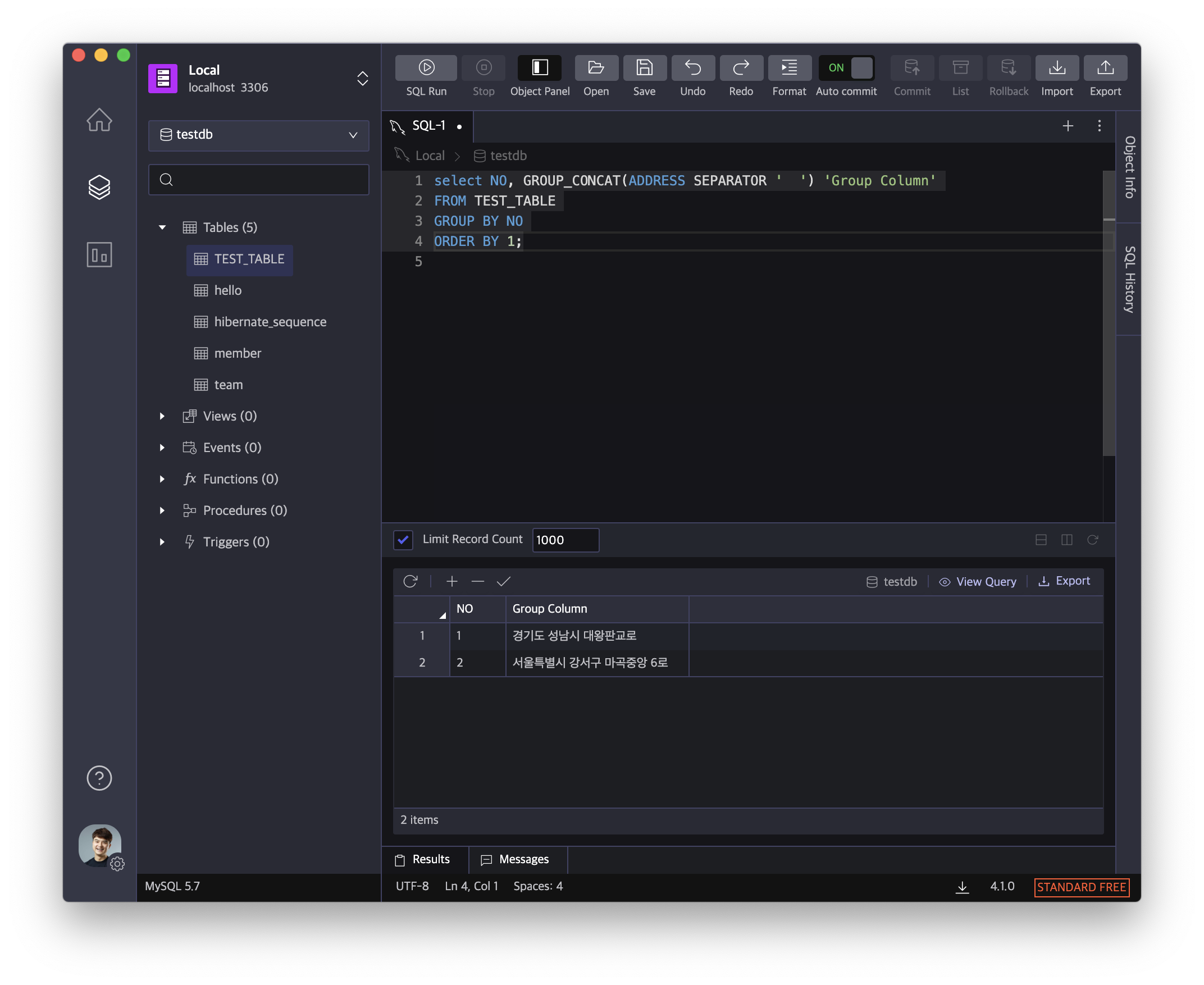 GROUP_CONCAT은 GROUPING된 레코드들을 원하는 구분자를 이용하여 문자열로 만들 수 있습니다. 아래 예제에서 사용된 데이터베이스 IDE는 CHEQUER에서 개발한 QueryPie 제품입니다.