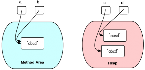 String 타입의 리터럴 “abcd” 값은 이미 생성되어 있지만, 생성자를 사용하면 불필요한 추가 객체를 생성하게 된다. 그러므로 단순히 String 문자열 값이 필요하다면 큰 따옴표를 사용해야 한다.