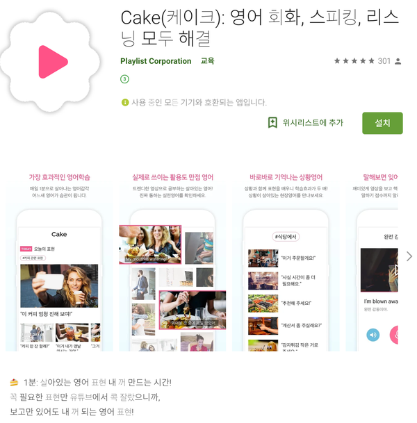 영어 공부 하기 좋은 유용한 무료 애플리케이션 Cake(케이크)