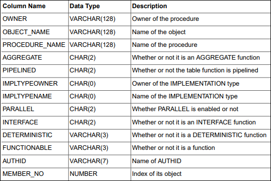 먼저, ALL_PROCEDURES는 테이블 또는 프로시저가 소유하고 있는 모든 프로시저 정보를 보여주는 뷰이다.