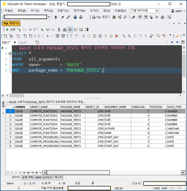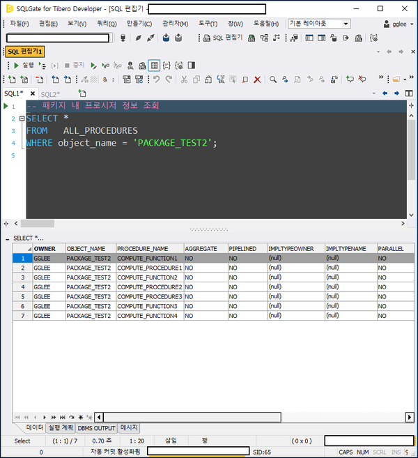 티베로 데이터베이스 패키지 내에는 프로시저(Procedure), 함수(Function)이 정의되어 있다. 현재, 패키지 내에 어떤 프로시저와 함수가 있는지 조회하기 위해서는 ALL_PROCEDURES 또는 ALL_ARGUMENTS 정적 뷰 둘 중 하나를 사용하면 된다.
