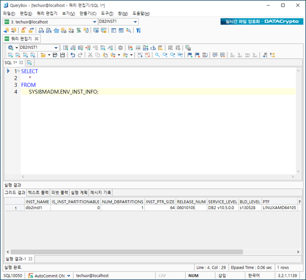 DB2의 데이터베이스 버전을 확인하기 위해서는 아래 SQL을 실행하면 된다.